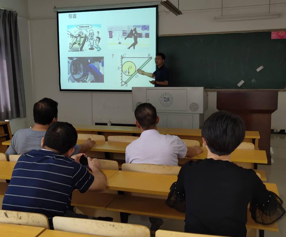 之后,杨柳老师作为青年教师进行了15分钟的公开课展示,讲解了《理论力学》中“约束”相关知识点。针对公开课讲课情况,张家凡教授提出了教学内容细节要抓牢,在研究“约束”的过程中要明确研究对象为非自由体;杨军胜老师指出课堂上要加入重点内容的板书;严清华主任对整体教学设计给予了积极的评价,强调青年教师教学本职工作的重要性,同时强调授课内容以及知识点的深度要根据授课对象的不同作适当调整;强调多听优秀教师的课堂教学,学习教学方法,从而不断提升自身教学技巧。