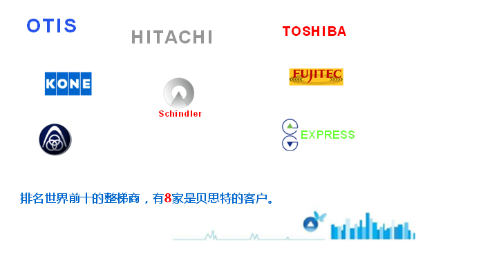 作为全球电梯电气产品配套商的主要成员,BST秉承为用户创造舒适生活的理念,始终保持对更高品质、更好服务完美追求的精神,在电梯部件行业已占居领先地位。主要客户包括通力、奥的斯、蒂森、日立、现代等国际国内的知名品牌,产品销售量在全国同行业同类产品排名第一位,电梯用按钮产量已经达到全球二分之一,电气公司产品国内市场占有率超过30%。