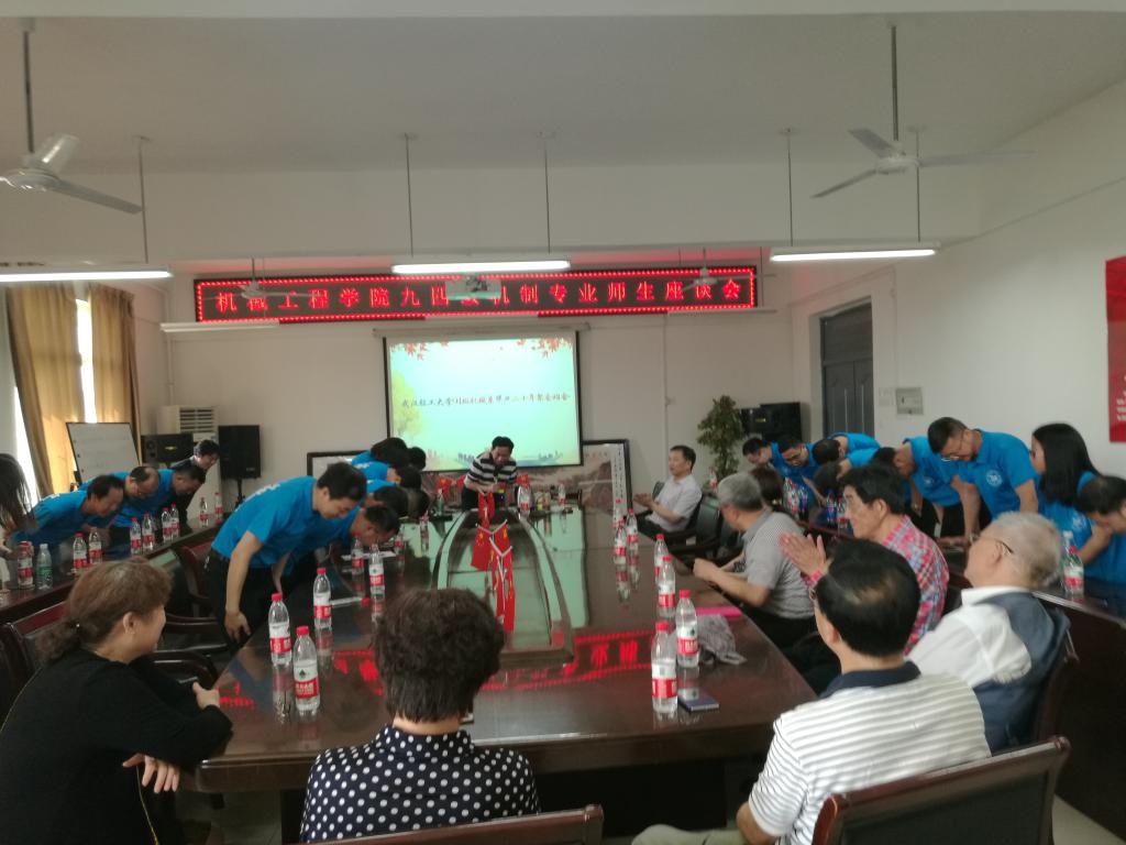 暮春四月,百花飘香,4月30日下午,英国365集团网站94级机制专业近30名同学返校聚会座谈,师长、同学齐聚一堂,畅谈在校求员工涯,回忆往昔美好时光,其乐融融。经理张永林教授、公司党委书记滕红华、副经理李诗龙教授、宋少云教授以及时任机制专业教学班的任课教师、辅导员出席了座谈会。座谈会由张永林经理主持。