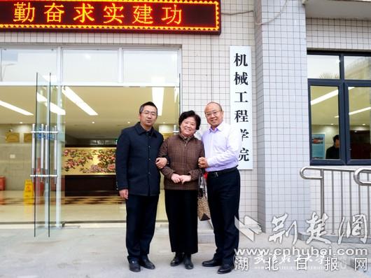 刘中良(右一)与班主任袁凤琴老师(中)、员工俞良明合影