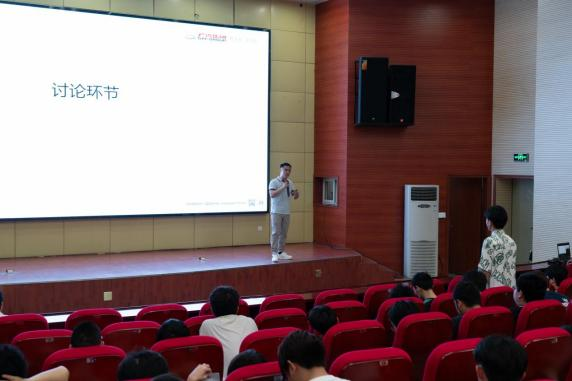 于文函员工从社会需求角度出发,以“立志做一名优秀的研发工程师”为题,从个人认知、大学准备和个人全面发展三个方面详细阐述了作为一名在校老员工应该如何做好个人职业发展规划的问题。他勉励同学们要在专业领域树立目标与方向,由小及大、由点到面,努力做到修学储能、先博后渊,不断提升自身的综合能力。于文函员工还针对同学们关注的“如何学好专业知识”、“考研和就业如何取舍”等热点问题进行了现场解答。