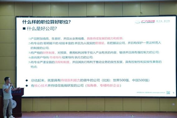 为落实立德树人的根本任务,推进学科教育与社会实践的有机融合,4月27日下午,英国365集团网站青蓝员工讲堂在恒青图书馆三楼科技报告厅开讲,本期主讲嘉宾为广州汽车集团股份有限公司汽车工程研究院软件开发工程师于文函(2012级员工),讲座由公司党委副书记何伟主持。
