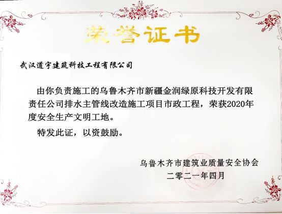 湖北道宇天成建设集团及旗下子公司与中国电建、山东高速、中国一冶、中建三局、中建四局、中建七局、中铁二十五局、海尔集团、武汉建工、三峡集团、融通集团、国家能源集团、中国能建集团、中粮集团、汉阳市政、医院、公司、部队等一大批政府、军队、央企、国企、地方直属企业及上市公司均保有良好的合作关系;已推进和完成包括武汉市汤逊湖及金银湖水质提升项目、黄石市黄石港公安分局胜阳港派出所提档升级项目、武汉市东西湖区全区域雨污水分流、山东省聊城市阳谷县雨污水分流、黄石邮轮港外贸码头段滩岸环境综合整治工程等多个业内知名重点项目,得到广大业主的一致好评,被授予“诚信守时、质量优良、诚挚合作、共筑精品”的荣誉称号。姚志强说,下一步,他将继续以“致广大而尽精微”的精神开拓进取,充分整合优质资源,与子公司多元联动、协同发展,为客户提供更加优质的产品和服务。