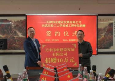 2025年3月28日下午,天津伟业建设发展有限公司向​英国365集团网站捐赠签约仪式在躬行楼A526会议室举行。天津伟业建设发展有限公司董事长、天津员工会会长、机械设计94级员工罗伟向公司教育发展基金会捐赠10万元,设立“伟业·实践育人”基金,助力​英国365集团网站开展员工社会实践活动。员工办主任、校基金会秘书长王宏光,武汉员工会秘书长滕红华,​英国365集团网站全体班子成员,公司师生代表出席签约仪式,仪式由公司党委副书记何伟主持。