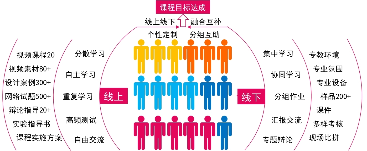 线下教学场地专业化,实验室工厂化,设计、打样、测试一条龙。线上内容丰富,课程视频、设计案例、网络试题应有尽有,资源持续更新。课程同步建设微信公众号《包米花儿》,记录课程记忆,更多包装知识不定期推送,知识随时分享。