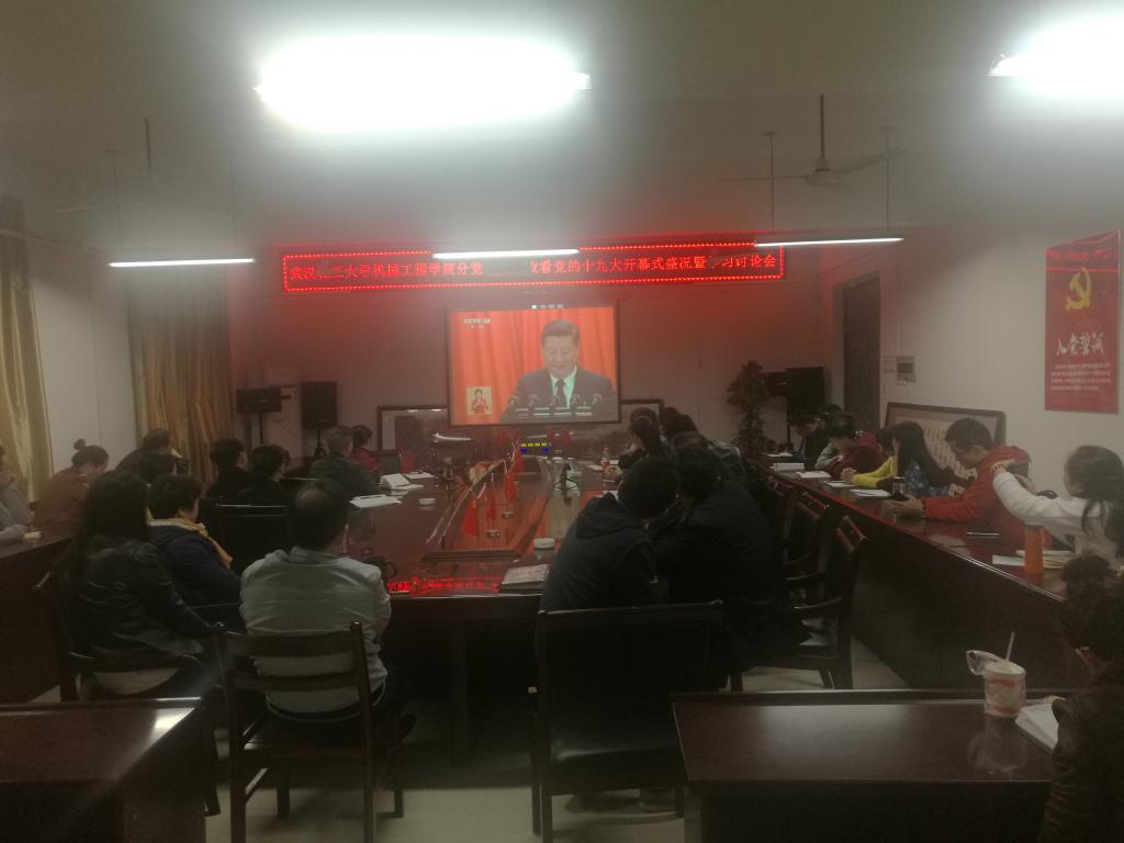 2017年10月18日上午,公司党委召开中心组扩大会议,组织无课师生在机械党员之家集中观看十九大开幕盛况,师生收看了十九大开幕直播实况,并展开讨论,反响热烈。