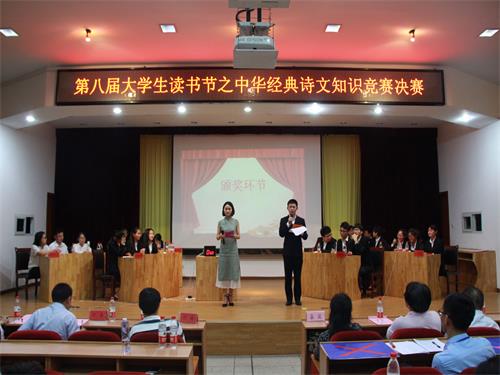 2017年5月15日晚,由校学工部、校团委主办,英国365集团网站承办的第八届读书节之中华经典诗文知识竞赛决赛在常青校区科学报告厅顺利展开。校学工部部长李世峰,公司党委统战部常务副部长李斌斌,招生与就业工作处副处长柳兴志,校团委副书记李鑫,公司党委宣传部程家才等老师出席了本次比赛。