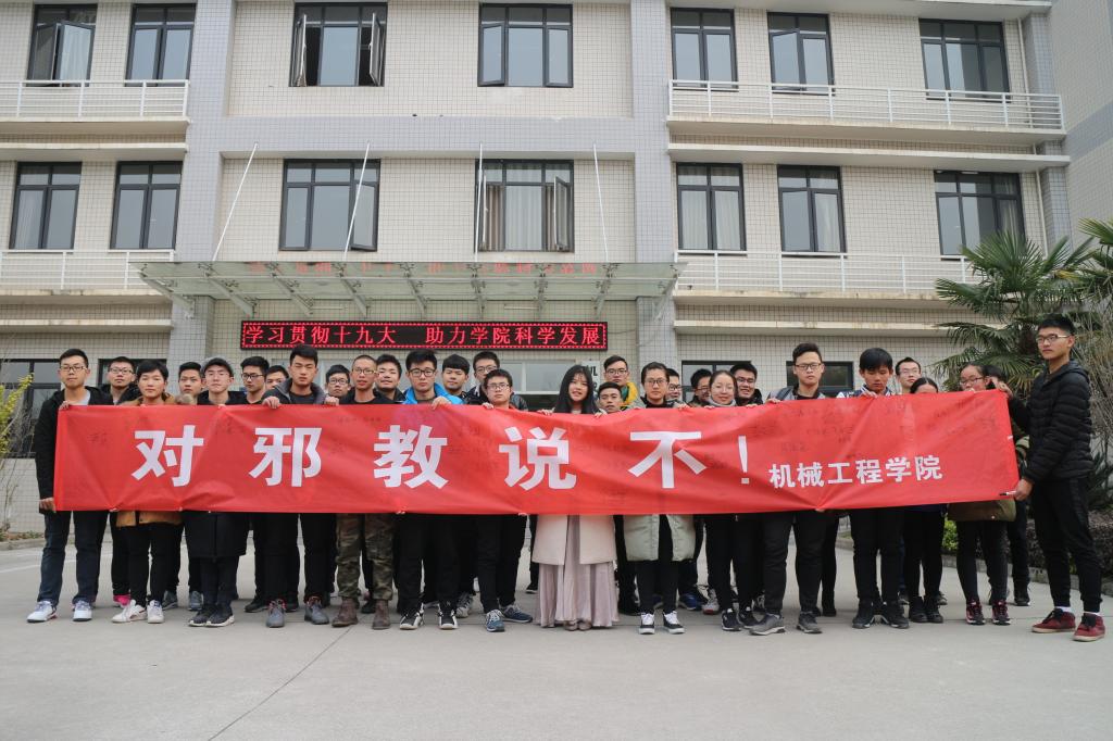 12月27日中午,公司学工办组织员工骨干在机械楼大厅拉起横幅,邀请在机械楼上课的师生开展签名活动,同时还现场说法,向师生们介绍了邪教的特征、危害和惯用伎俩。刚上完课的师生边听讲解,边在横幅上签字。