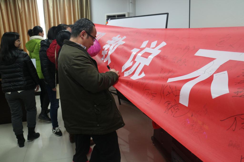 12月29日,在公司例会结束后,公司党委组织了全体教师开展了签名活动,全体教师纷纷表示通过签名活动思想受到教育,对邪教认识更清晰了,反邪教的主动性更强了。