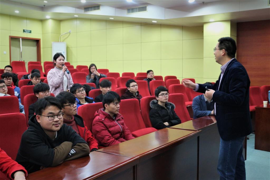 他强调,要想脱颖而出、鹤立鸡群,首先应该做到的是“温故而知新”。要立足于本专业,学好专业理论知识,打下坚实基础,才能谈创新和创业。在此基础上,还应当勇于参与社会实践,接触社会、了解社会,熟悉行业规则。他还鼓励员工多参与创新创业大赛,积极响应“大众创业、万众创新”的号召,通过参加创新类大赛开阔眼界、磨砺自我。