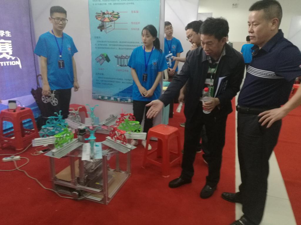 本次大赛由湖北省教育厅主办、襄阳职业技术公司承办,全省高校参赛的720多件作品经网评、初审后,35所本科院校、16所高职院校的共计312件作品入围参加现场比赛。公司选送的智能魔方车库、爱车公寓、单轮触地式自行车停放装置、智能草莓采摘助手四件作品获得评委一致好评,入围一等奖,其中孙亮波和赵险峰老师指导的智能魔方车库排名一等奖第九名,推荐进入2018年第八届全国老员工机械创新设计大赛决赛作品遴选。其余六项作品也分获二、三等奖。