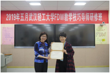在经过培训以后,严清华老师获得了FDW国际认证证书,这意味着严清华老师向国际培训教团队格又迈进了可喜的一步。公司分管教学的宋少云副经理代表公司向严清华老师表示了由衷的祝贺。他希望这位老师除了提升自己的教学能力以外,也能带领其他老师锻炼其教学技巧,为员工造福,为公司争光!