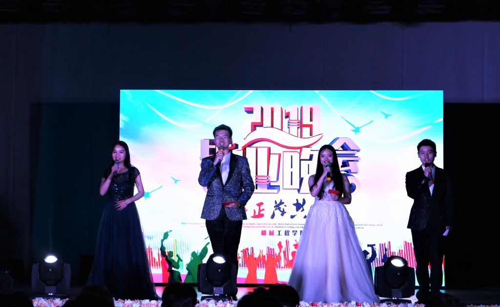 舞蹈《Bingle Bangle》瞬间将全场的热情点燃,场上气氛热烈;相声《有哲理的人》用诙谐、幽默的语言,讲述着老员工活中平凡趣事;吉他弹唱《那一年》带着大家穿梭到刚踏进校门的那一幕;歌舞《半壶纱》仙气缭绕,美轮美奂;跆拳道表演《跆拳风》火力全开;五月合唱团带来的合唱《大鱼海棠》,优美动听、余音袅袅,绕梁不绝;在串场视频中,领导、老师们纷纷为2019届毕业生送上祝福。真挚的寄语寄托了师长对即将扬梦启航的毕业生殷切的希望。