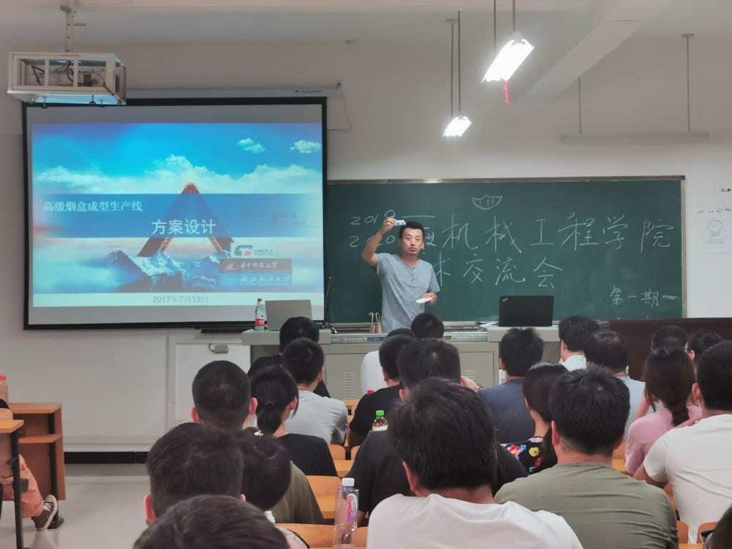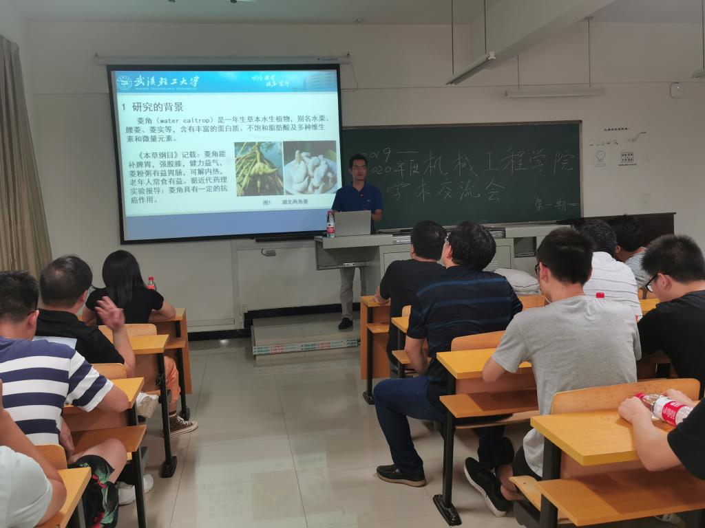 活动分为学术报告和现场讨论两个主要内容。本期由万志华和王北海两位老师主讲。两位老师以《鲜菱角脱壳机关键部件设计与实验研究》和《高速烟包精准成型上胶及纸材成型控制研究》为主题作了详细的报告,对相关课题研究的部分成果作了分享。在认真听取完报告后,在场的老师和员工针对报告展开了热烈的讨论,提出了不少宝贵的意见和想法,给予了主讲老师新的启发和思路。