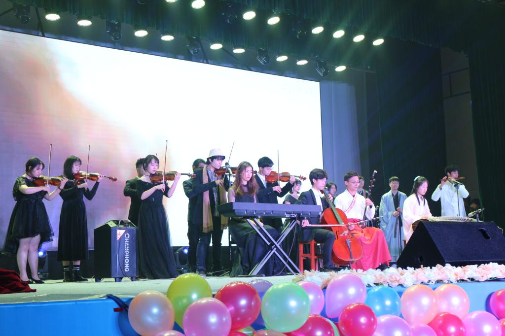 表彰结束后,参会师生一同观看了“彰显活力,拥抱青春”主题元旦晚会。元旦晚会在校艺术团的、舞蹈《what is love》中拉开序幕。机械1909班表演的小品《四大才子》逗的大家捧腹大笑;英国365集团网站文工团表演的《馨语》歌曲串烧,揭开了青春的苦辣酸甜;未名小提琴协会和笛箫协会带来的乐器合奏,音韵悠扬,让观众听得如痴如醉;动漫社wota部的《wota艺》将观众带入了全新的炫酷世界。晚会在文工团模特队带来的T台秀中落下帷幕。