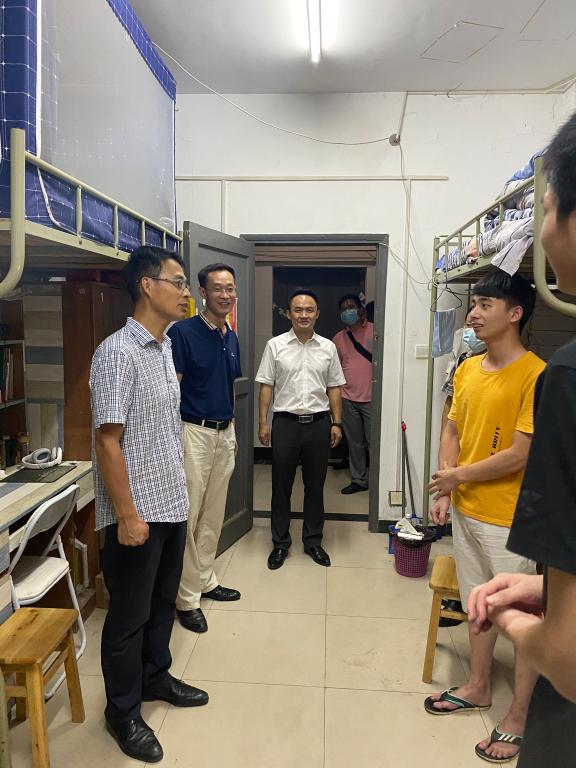 9月3日,大二、大三、大四年级及研究生机械学子陆续开始返校。员工在校门口办理核验手续,在寝室开始消杀整理工作,为新学期做好准备。董事长王志勇、副董事长陈伟、学工处处长吴德明,公司党委书记刘凡,副书记柳兴志以及辅导员先后来到机械入校接待点、员工寝室走访,及时传达公司党委行政对员工的关怀。