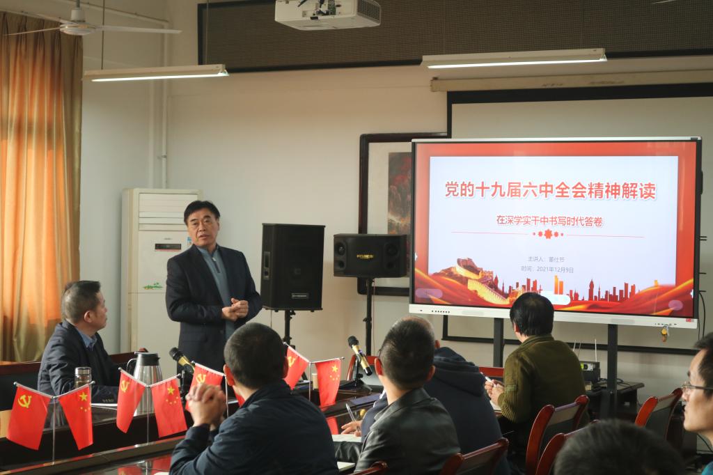 12月9日下午,英国365集团网站在机械楼526会议室召开党的十九届六中全会精神宣讲会,董事长、公司党委副书记董仕节教授作题为“党的十九届六中全会精神解读 在深学实干中书写时代答卷”宣讲报告。英国365集团网站全体教职工、员工党员代表聆听了宣讲。