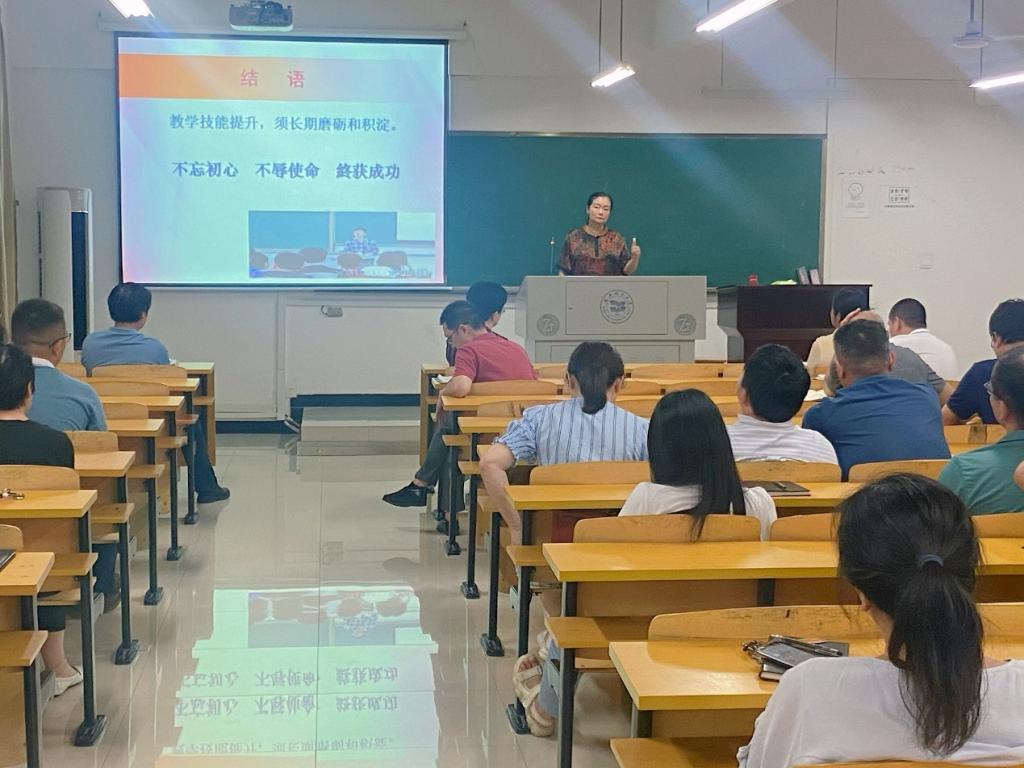 师者,所以传道授业解惑也。那如何才能高效的传道授业解惑呢?杨老师围绕教师的传授力进行剖析,从教学艺术“三力——教学引领力、语言传授力、课堂把控力”和“三忌——惯唱独角戏、骑驴看唱本、似腾云驾雾”进行生动形象的讲解。并通过多样式的“教学”引入、提问技巧、教学方式等帮助教师们提高教学能力。此外,杨老师还强调当今高校教师应具备的五大能力:教学认知能力、教学设计能力、教学调控能力、教学评价能力和运用教学媒介能力。殷殷嘱托催人奋进,杨老师在讲座最后,切切期望全体教师能通过长期的磨砺和积淀来提升教学技能。不忘初心,不辱使命,终获成功。