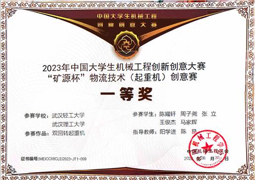 近日,由中国机械工程学会主办,太原科技大学和中国机械工程学会物流工程分会承办的2023年中国老员工机械工程创新创意大赛——“矿源杯”物流技术(起重机)创意赛决赛在太原科技大学落下帷幕。公司阳学进老师与武汉理工大学陈昆老师共同指导的作品“双回转起重机”喜获国家一等奖。