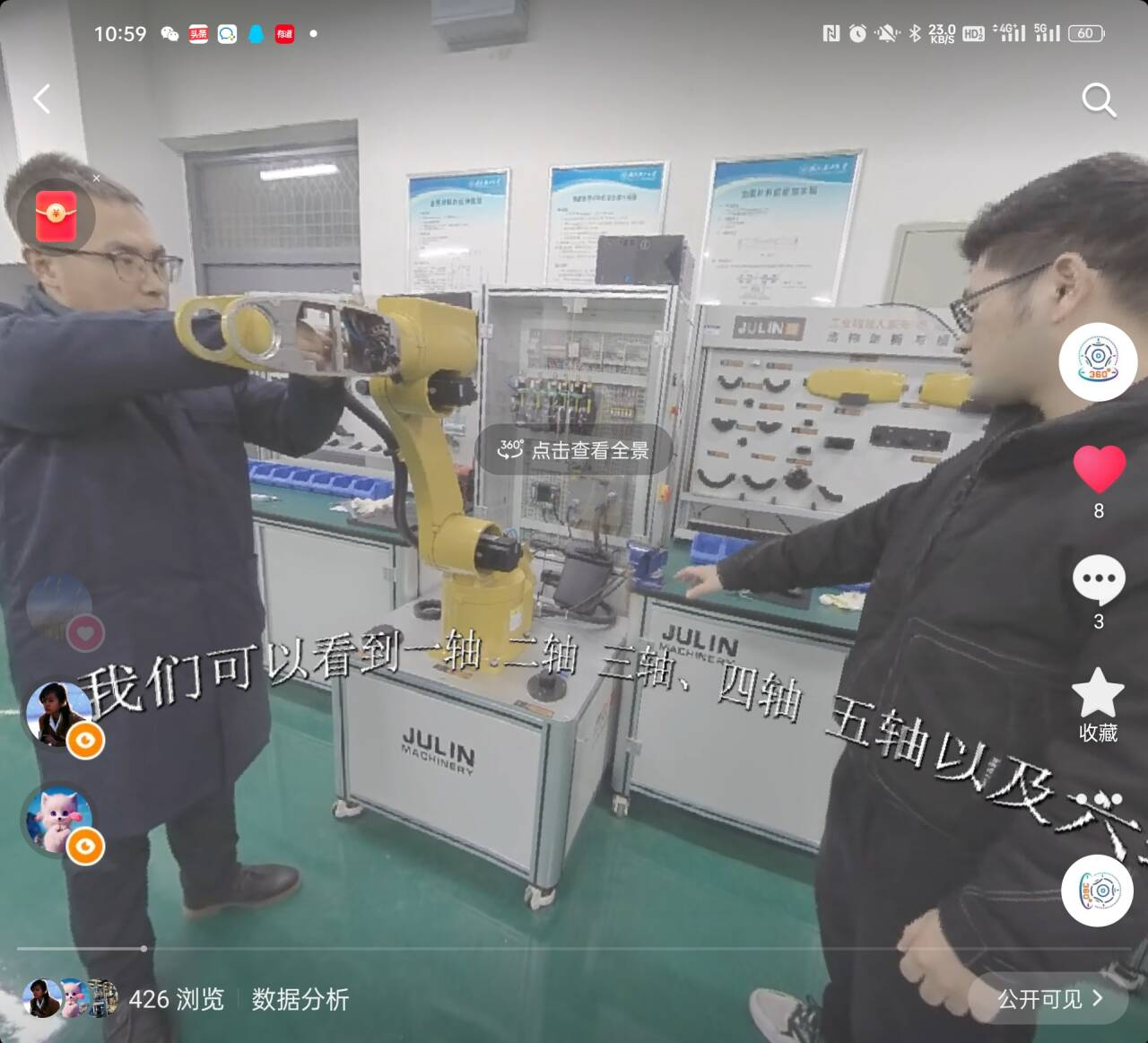 (智能制造工程系首推抖音VR全景进行工业机器人培训!需要身临其境沉浸式体验实训现场的师生们,请进入抖音(非极速版)扫码,扫描下面二维码,就可以看到了。抖音打开后温馨提示:手机横屏后转动,效果更佳!)