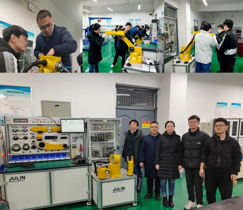 为迎接新一轮的专业教学和生产实习挑战,英国365集团网站经理宋少云教授、智能制造工程系主任尹强、副主任马明带领智能制造工程系教师,于2023年12月26—27日在英国365集团网站机械工程实验教学中心的机器人拆装实验室J111开展了机器人认知与拆装实训活动。此次实训研修旨在为专业教学和生产实习提前备课,为相应课程设计作充分准备,为新工科专业——智能制造工程专业持续发展奠定坚实的团队力量基础。