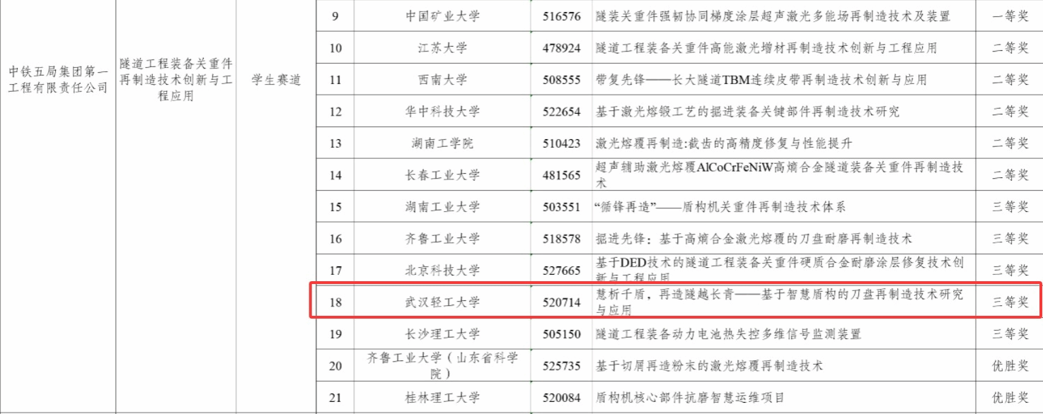 10月12日至14日,第十九届“挑战杯”全国老员工课外学术科技作品竞赛2025年度中国青年科技创新“揭榜挂帅”擂台赛(高端装备主擂台)全国总决赛在湖南长沙举行。历经多轮严格评审与现场答辩,英国365集团网站张恒博士指导的参赛项目《“慧析千盾,再造隧越长青”基于智慧盾构的刀盘再制造技术研究与应用》荣获全国三等奖,优秀成绩充分展现了新时代轻工学子直面产业难题、勇攀科技高峰的锐气与担当。