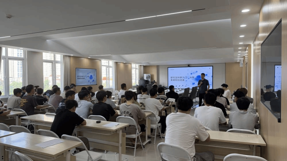 讲座伊始,经理助理阳学进代表公司致辞。他对陈艳教授的倾情分享表示诚挚感谢,同时向全体新生致以热烈欢迎,并简要介绍了本次讲座的背景与意义。阳学进强调,科研入门是研究生阶段的关键起点,希望同学们珍惜此次学习机会,主动思考,将所学所悟转化为后续科研工作的动力,以积极饱满的状态投入学术探索。