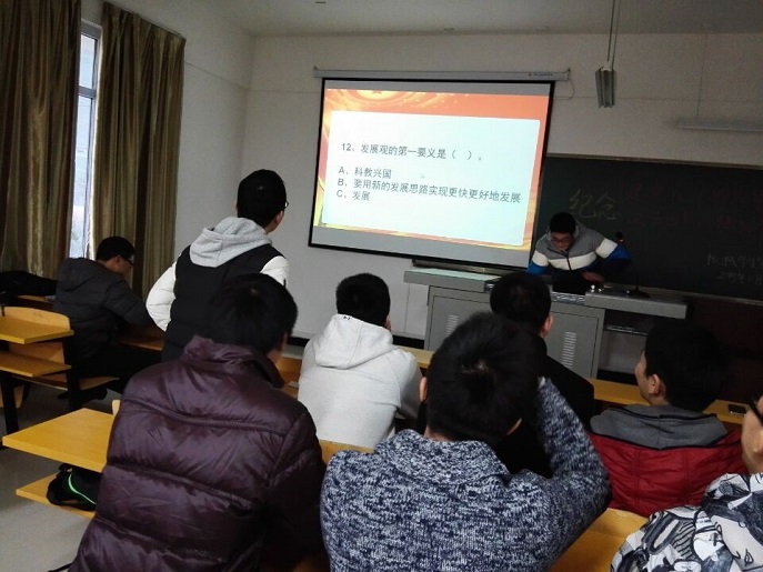 本次活动的第二个环节是有奖竞答。竞答以党建知识和抗战知识为主题,内容涉及建党时间、地点,抗战中的重要会议、党的十八届三中、四中、五中全会精神等。由于同学们平时对党的知识和党的十八大会议精神一直很关注,再加上这段时间的认真准备,问答环节进行得十分顺利,尤其是抢答环节,同学们你争我抢,不愿意失去任何一个机会。活动最后,由记分员覃远东同学公布问答成绩。第四党支部书记康玉超为表现优秀的同学颁发奖品。