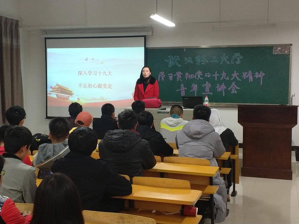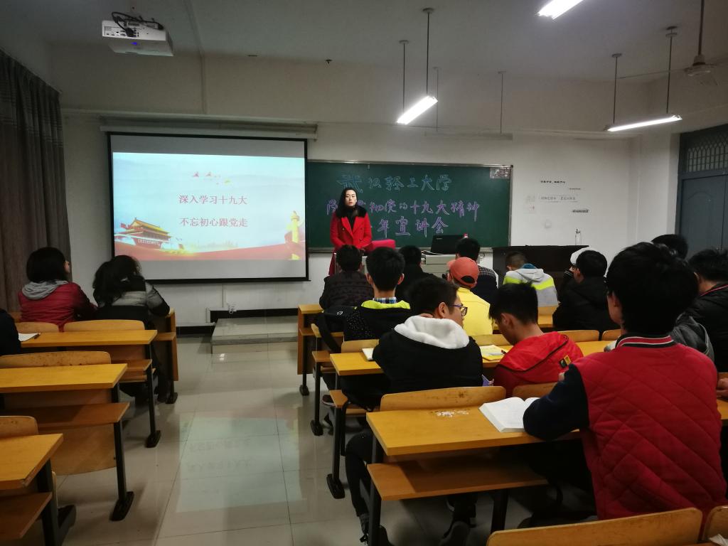 为进一步学习贯彻党的十九大精神,英国365集团网站分团委于12月3日晚6点半在机械楼208成功开展了以“学习贯彻党的十九大”为主题的青年宣讲会。宣讲会由英国365集团网站分团委书记苏娟老师主讲,参会成员有英国365集团网站员工会干部,各年级团支书以及入团积极分子。