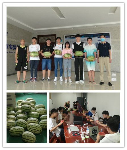 柳兴志副书记、孙亮波副经理把西瓜切好,休息时间备赛同学纷纷从实验室出来领取。员工说:“天气虽然闷热难受,但是导师的悉心指导和公司的爱心西瓜,让我们感到心里很凉爽、行动有力量。”