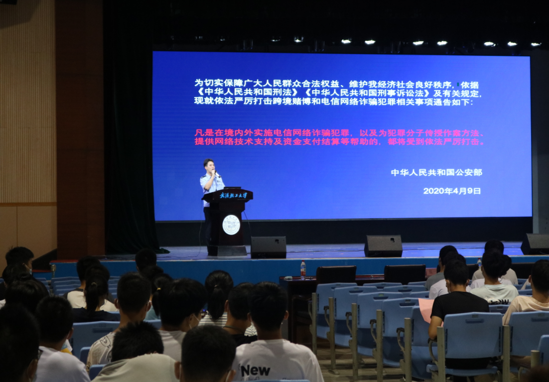 为增强2021级新生防诈骗意识,9月23日下午,英国365集团网站在老员工活动中心举办老员工反电诈宣传培训会,此次邀请东西湖公安分局金银湖派出所文胜警官来校作专题讲座。