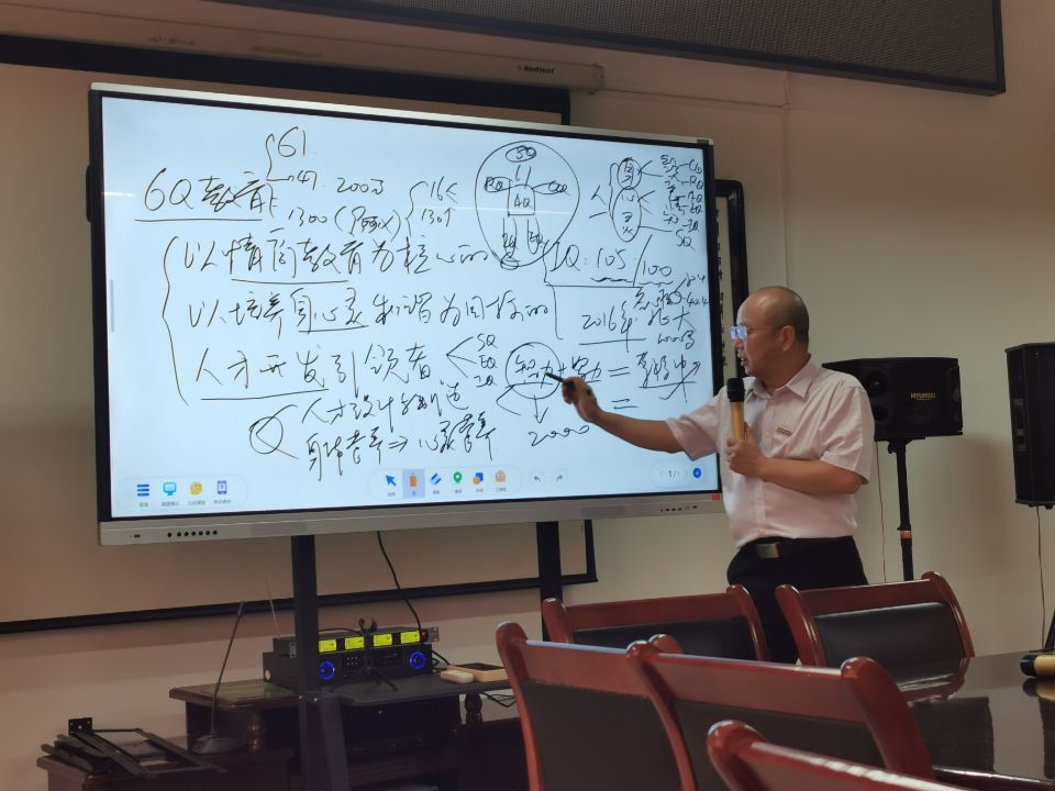 员工刘中良先生重点分享了教育理念和人生经验。他围绕6Q教育,分别从“情商教育为核心、培养身心和谐为目标、成为人才开发引领者”三个方面详细分享了自己的创业经历和感悟。他还带领现场同学们探讨了如何树立正确的爱情观,现场气氛热烈。