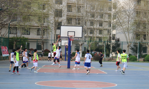 哨声响起,比赛开始,双方队员围成一圈,相互打气,拉近彼此的距离。随着比赛深入,队员逐渐进入状态,场上的气氛紧张而激烈,带球、突破、投篮,干净利落。出色的配合,快速的回防给比赛增添了无限魅力。与此同时,场外的同学们伴着鼓声呐喊助威,为比赛增添了更多活力。春光明媚的时节,同学们和员工们在篮球场上汗流浃背,他们的笑容与阳光交相辉映,激情、青春、友谊之花尽情绽放。