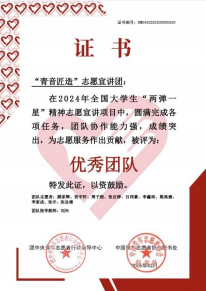 “青音匠造”志愿宣讲团 优秀团队证书