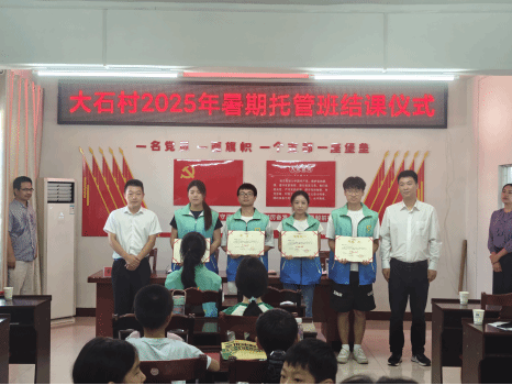 结业仪式话收获,校地联动助振兴。7月底,暑期托管班结业仪式在大石村党员群众服务中心举行。公司党委副书记何伟、草店镇镇长曹森、随县团委副书记雷存健出席仪式。仪式上,孩子们的诗朗诵和手工美术作品赢得阵阵掌声。曹森、雷存健为志愿者们颁发荣誉证书并对他们的辛勤付出给予肯定:“你们用爱心与专业,为孩子们点亮了假期,更展现了轻工大学子的责任与担当。”
