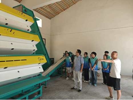 结业仪式后,何伟等一行人前往车云山村,参观村集体产业色选机项目。在项目现场,村支书周恩忠介绍道:“这台色选机能精准分拣茶叶,一台设备可以满足周围好几个村的需求,生产效率提升了一大截。”何伟与村干部深入交流:“乡村振兴需要产业支撑,也需要人才助力。我们将进一步号召更多学子带着技术和知识服务乡村。”随后,一行人参观了金家沟美丽乡村建设,错落有致的民居、整洁的休闲广场、配套完善的文化设施,让大家切实感受到乡村振兴的生动实践。
