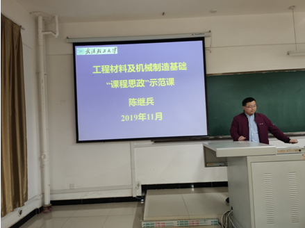 11月21日下午,材料成型及控制工程系在机械楼302教室举办推进课程思政建设,夯实立德树人责任——《工程材料及机械制造基础》“课程思政”示范课活动,材料成型及控制工程系由陈继兵老师进行了“课程思政”说课展示。