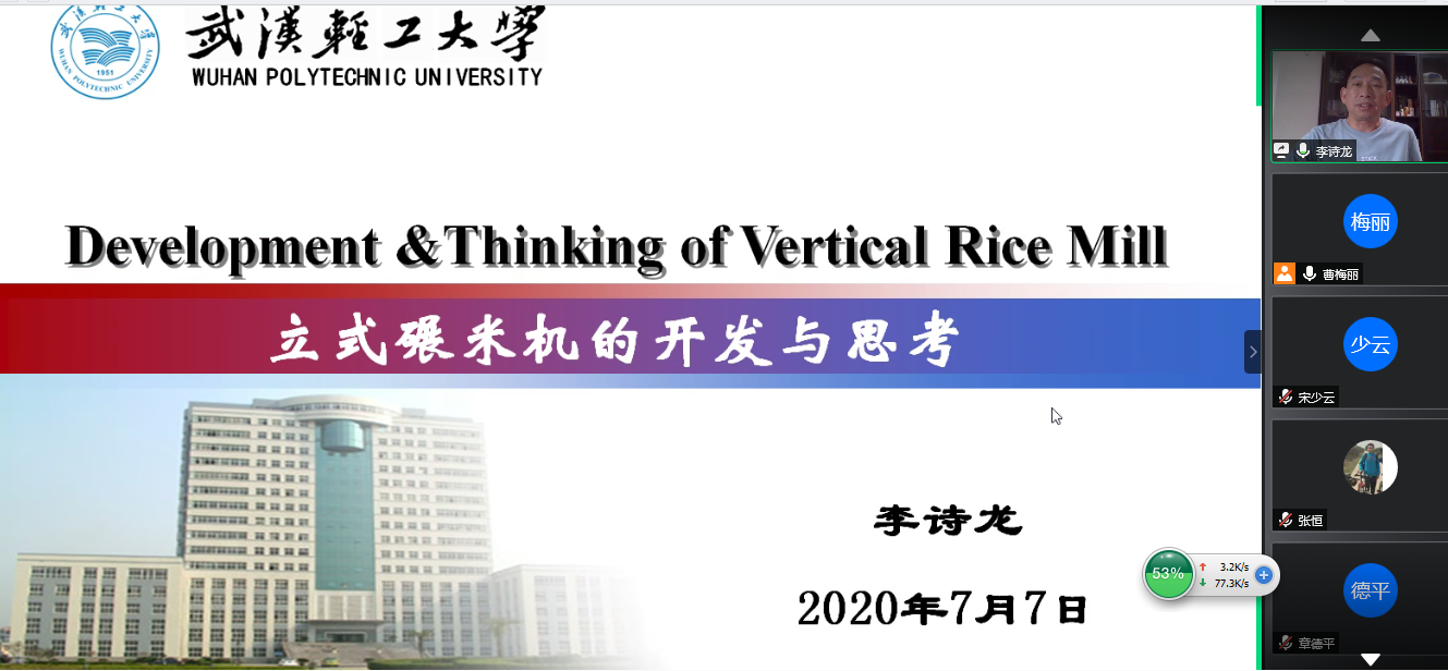 7月7日,公司农产品加工装备团队召开线上团队例会,由李诗龙教授为团队成员进行碾米机知识培训,旨在让从事其他领域研究的博士们快速了解和掌握团队的研究对象,快速入门。
