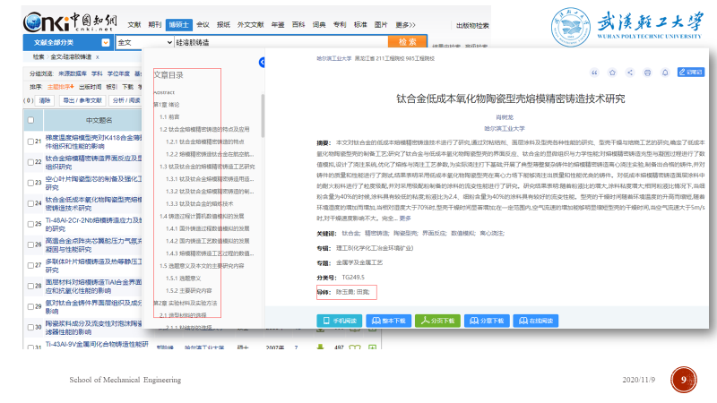 讲座内容主要涵盖文献的分类、常见的文献检索入口、文献的检索方法技巧,以及如何泛读及精读文献,并以“硅溶胶铸造”为例,详细介绍了检索方法和技巧。同时,讲座还介绍了科研中常用的绘图软件origin,文献管理软件endnote在科学论文撰写过程中的应用。