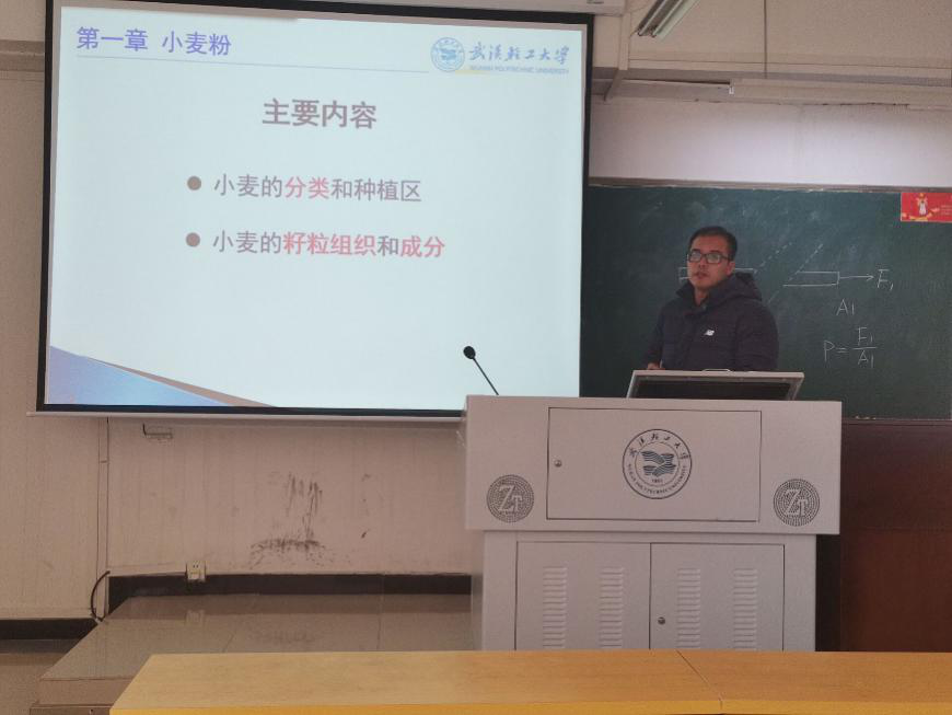 张老师所讲课程为《食品加工工艺》。本次课主要内容为小麦粉的相关知识,主要包括小麦的分类和种植区,小麦的籽粒组织和成分。该课程概念较多、信息量大,张老师在授课时,概念准确、条理清晰,内容熟练。