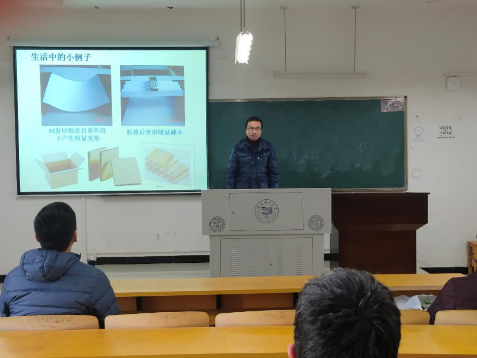新进青年教师张恒作公开课讲座。张恒老师结合生活中的小例子,从材料力学的研究内容、主要任务、四种基本变形形式等几个方面娓娓道来。教研室的其他老师在听完公开课后纷纷给与了肯定,也指出讲课过程中的不足之处。周红老师指出材料力学是一门实践性很强的课程,可更多结合生活中的实例为员工讲述,课堂的板书不足,仍有待提高。章德平老师指出在课程教学中的吐字、语速语调问题。