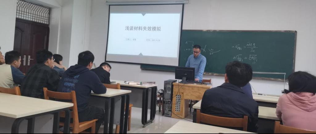 活动首先由张敏老师基于前期开展的项目研究内容作了主旨为“材料失效模拟研究”专题讲座,从材料失效模型、材料冲击失效试验测试、材料失效建模与数值模拟以及与测试试验对比验证几个角度进行了深入的报告,基于前期项目研究内容以及现阶段船舶领域冲击研究热点与发展趋势进行了分析,最后总结了材料失效仿真领域最新的研究方法。