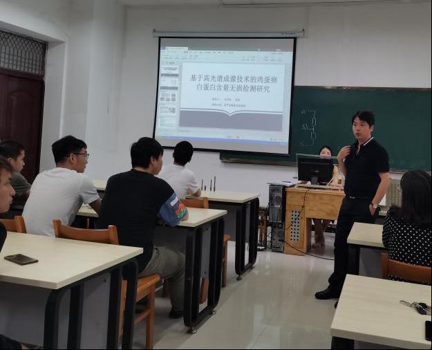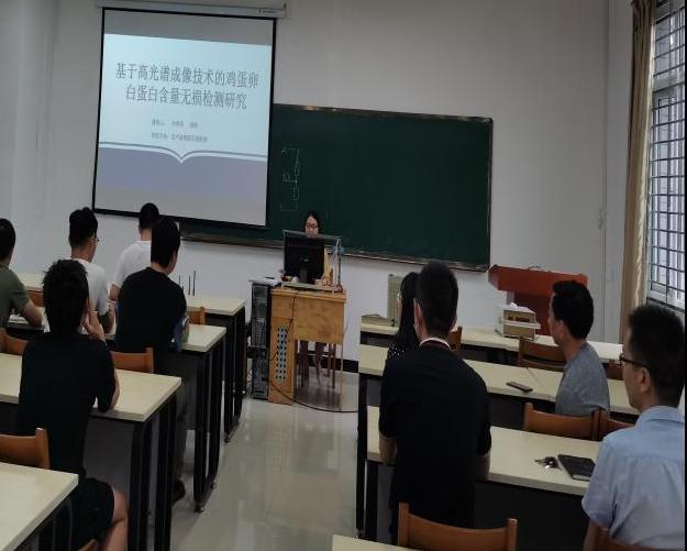 首先由付丹丹老师作了主旨为“基于高光谱成像技术的鸡蛋卵白蛋白含量无损检测研究”专题讲座,基于自身科研经历,讲解了高光谱测试技术在食品检测领域应用的方法和机理。以博士研究内容为背景,贮藏期间鸡蛋品质与预测研究作为相关食品加工与保鲜的基础,S-卵白蛋白直接关系到实际品质,基于鸡蛋高光谱测试数据、结合效率分析不同算法下鸡蛋高光谱品质预测模型与鸡蛋S-卵白蛋白实际测试对比,证实了高效率高光谱测试技术在鸡蛋品质测试的实际应用,之后对食品品质的高光谱技术应用的基础内容与发展趋势进行了阐述。