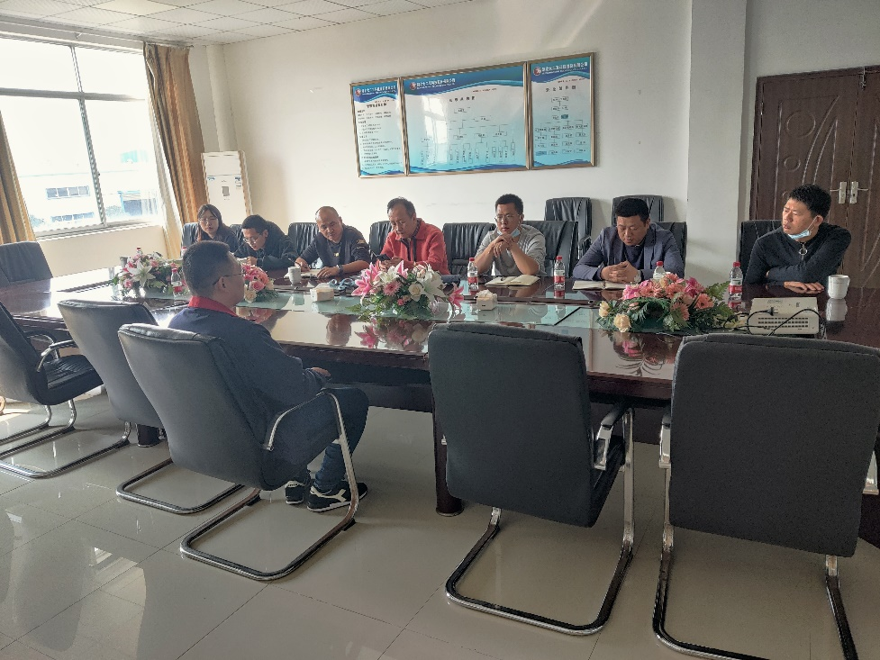 在参观完工厂后,科研团队师生与董总、黄冈市科技局领导等进行了座谈交流,在交流会上,董总说明了近年来公司的发展历程,并提出了企业目前的技术需求。随后团队负责人孙亮波老师对于湖北大二互科技股份有限公司提出的项目合作方向的可行性和难点,进行了深入的分析,然后提出了缠绕铜丝这个操作过程机械化的可行性,并与董总进行了技术上的交流。
