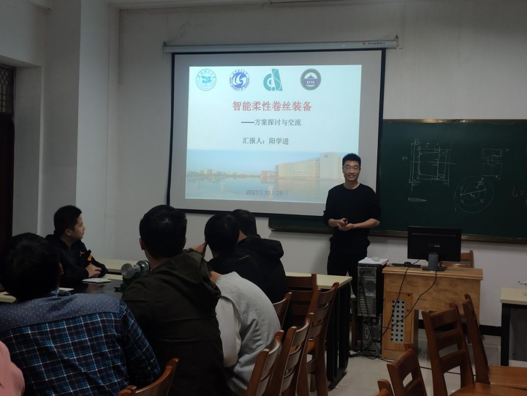 汇报完毕后,在座师生与阳学进老师进行了现场交流,大家肯定了阳学进老师的工作,一致认为该项目的顺利开展对公司的科研工作具有十分积极的意义,“智能柔性卷丝装备”需要立足于可行的工作原理,后期团队应对相关设备进行充分的调研与考察,以确保方案具备先进性和可行性。