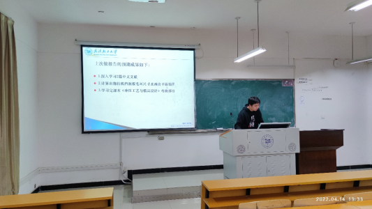 随后,材料创新团队的2021级硕士生刘博文、曾如铁分享了最近的文献阅读,刘博文重点介绍了最近的科研进展。杨军胜老师指出了刘博文同学的研究方法中传热模型存在的不足,王泽安老师就其网格精度问题提问,并给出了建议。各位与会老师积极提问,并针对如何改进开题汇报给了具体的意见和详细指导。