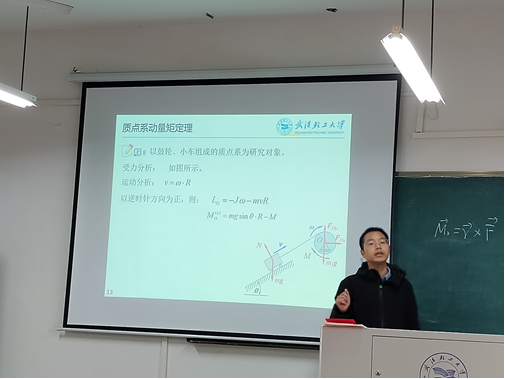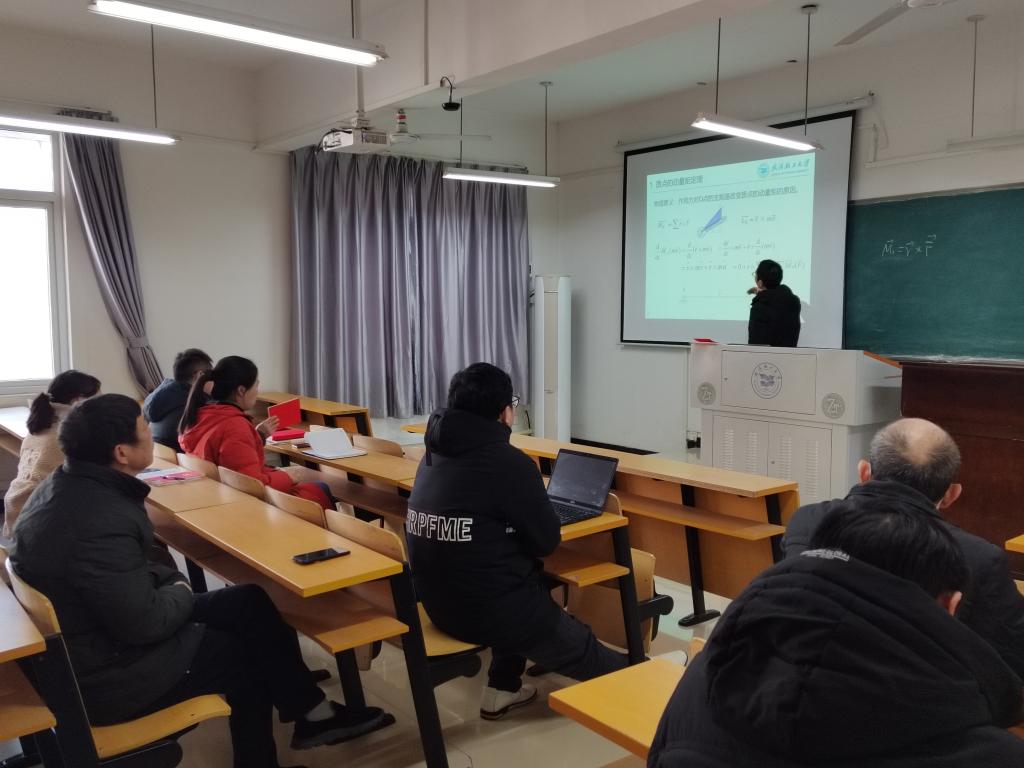在教师讲公开课环节,首先由杨柳老师给大家示范讲授了含有思政元素的《理论力学》课程节选内容。授课后,参会教师逐一发言,点评,谈体会感受,大家针对思政元素的选取、专业课的顶层设计、以及思政效果等方面各抒己见。熊列强教授与马明老师对杨柳老师的思政教学演练表示了肯定,并指出大家应向杨柳老师学习将BOPPPS教学方法应用到实际教学中。尹强主任肯定了杨柳老师课件中具有显示度的思政元素,但感觉需进一步突出和思考如何更好地表达出来。这次公开课的交流讨论对与会老师启发很大,帮助大家后续更好地摸索和开展课程思政教学。