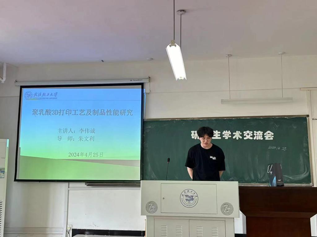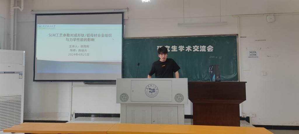 会议开始后,2021级硕士生胡茂辉就“SLM工艺参数对成形/铝母材合金组织与力学性能的影响”进行汇报;接着,由2021级研究生孙长林就“ZnO基光催化剂的制备及其降解水中污染物的研究”做了实验成果分享;然后,由2021级硕士生李伟杰就“薄壁TA1铁管高频感应焊焊接接头微观组织和性能研究”最后,由2023级硕士生李伟诚就“聚乳酸3D打印工艺及制品性能研究”分享了实验结果。