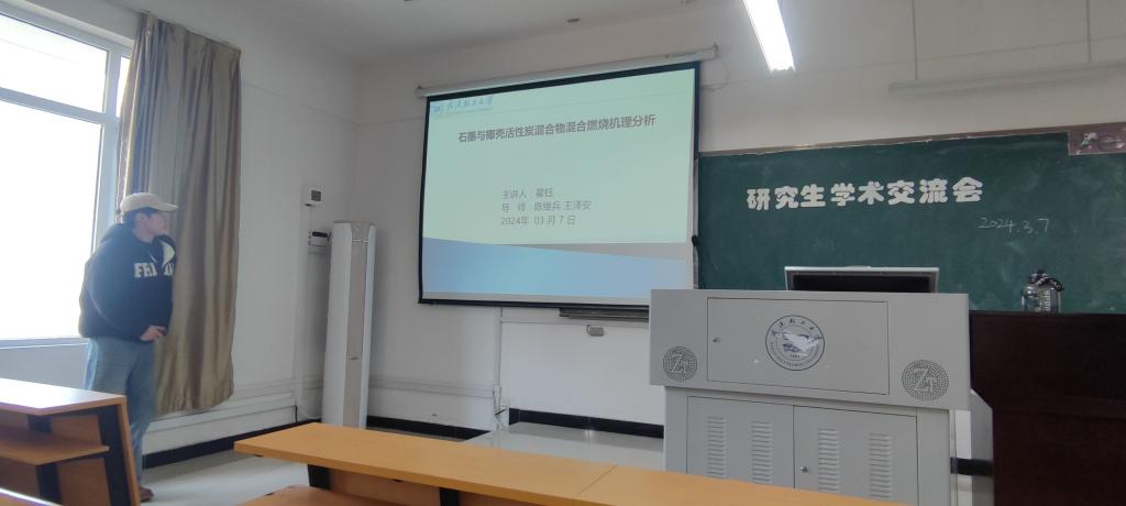 会议开始后,首先,2021级硕士生孙长林就近期学习进行汇报;接着,由2022级研究生翟钰就“石墨与椰壳活性炭混合物混合燃烧机理分析”做了实验成果分享;最后,由2022级硕士生夏镇琪就“激光熔覆Fe基耐磨涂层组织及性能的研究”分享了实验结果。