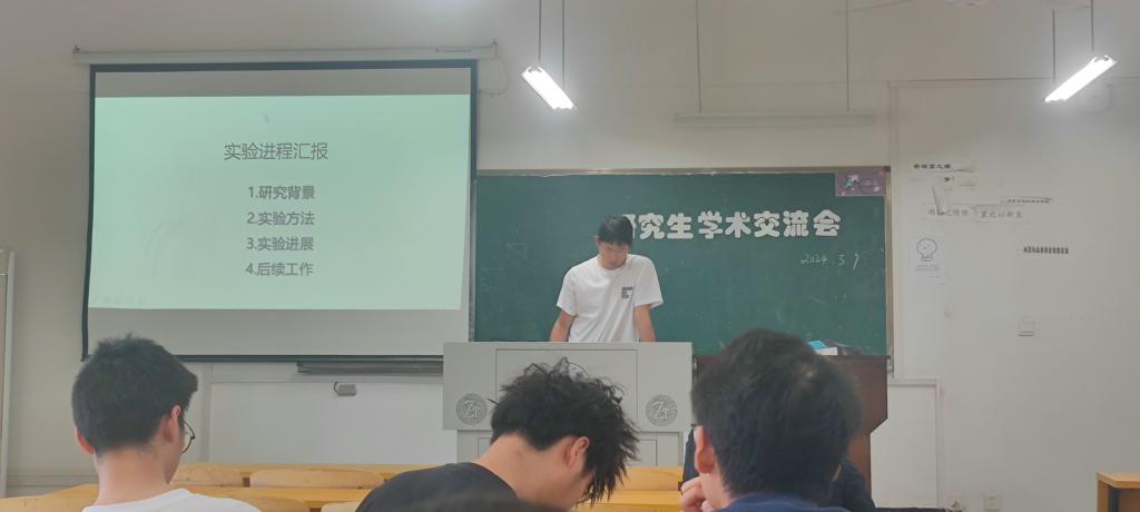 ▲研二聂铖同学介绍近期研究进展